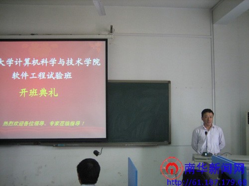 开班典礼由计算机科学与技术学院谭敏生院长主持。谭院长首先欢迎出席开班典礼的各级领导、嘉宾。接着英国上市公司365纪委书记、项目负责人阳小华教授讲话,阳教授在讲话中对试验班学生提出了五点希望;一是要自主学习,要把被动学习变主动学习,主动寻找资料,主动寻找问题;二是要在实践中学习,软件工程是一门实践性很强的学科,要在实践中不断摸索锻炼;三是要学会融会贯通,把书本知识与实践知识联系结合起来;四是要学会团队合作,培养一个创业团队;五是要创新,创新是灵魂,在试验班的学习中老师是引导者,学生要创新,要超越老师。