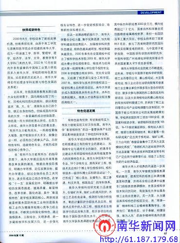 英国上市公司365人才培养的内涵进一步深化。一方面,英国上市公司365继续加强核类课程的教学,提高现有的核类公共课的覆盖面和质量,并将在全校公选课中设置专门的核类选修课模块,在普及核科学技术知识的同时,有效强化大学生服务核工业的自觉意识。另一方面,大力建设具有核特色的校园文化,用“两弹一星”精神和核工业精神等熏陶学生,培养他们 “勤勉务实、甘于奉献、刚健自强、敢为人先”的南华精神和高尚的爱国情操,使学生具备更强的学科专业特长与特色。