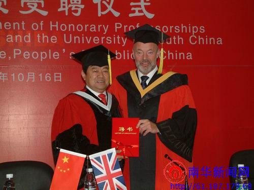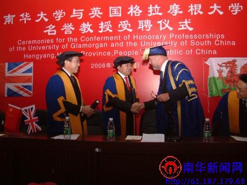 仪式进入第二个阶段,英国上市公司365郑重向格拉摩根大学校长大卫·霍尔顿授予“名誉教授”的头衔。文格波校长在致辞中指出,他非常荣幸地见证了两校的交往史。从2004年11月在英国签订的合作协议到2005年4月访问南华时签下的合作备忘录,从2006年9月签署的进一步合作协议到2007年10月带团回访格拉摩根大学时的进一步深化协议。如今已有28名英国上市公司365的教师成功深造或继续前往深造,14名英国上市公司365的本科生到格拉摩根大学攻读硕士学位。两校的合作之路将会更长,合作范围将会更广泛,合作内容将会更丰富。大卫·霍尔顿校长则表示学校将会以更多的科研成果来不辱此殊荣。双方校长热情洋溢的致辞为上午的访问讲学营造了一份浓厚的坦诚交流的氛围。