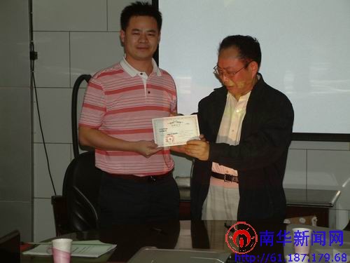 副校长吴移谋(右)向我校94级校友刘吉郎(左)颁发捐赠证书
