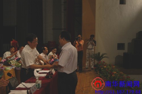 庆祝大会现场校党委副书记、副校长廖端芳讲话校党委副书记赵红主持大会校领导为湖南省高校教学名师谢水波教授颁奖