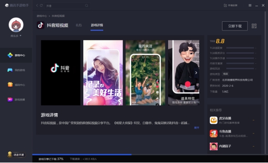 (2)启动电脑端“腾讯手游助手”,进入首页搜索“抖音短视频”,下载并安装。
