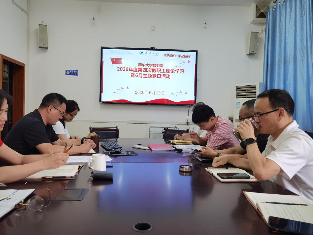 6月19日下午,教务部举行2020年第四次教职工政治理论学习暨6月主题党日活动。活动由教务党支部副书记罗晨晖主持,教务部全体教职工参加学习。
