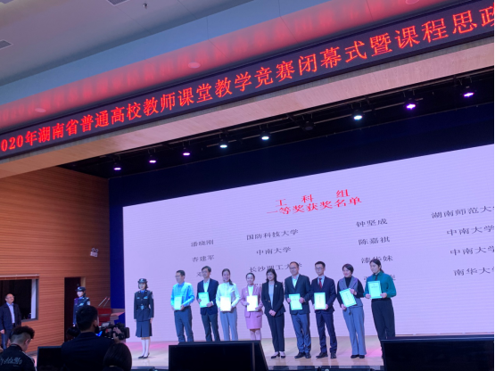2020年10月31日, 2020年湖南省普通高校教师课堂教学竞赛现场决赛在湖南警察学院落下帷幕,我校衡阳医学院《病理生理》课彭娟老师获理科组一等奖,资源环境与安全工程学院城市地下工程系《结构力学》课张楚旋老师获工科组一等奖,两位获奖教师同时获得湖南省普通高校教学能手荣誉称号。我校被授予优秀组织奖。