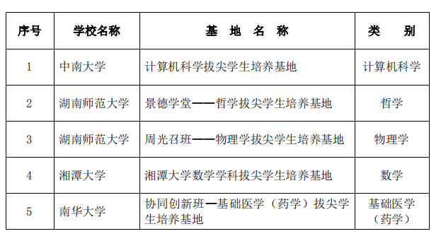 2019年度省级基础学科拔尖学生培养基地认定名单