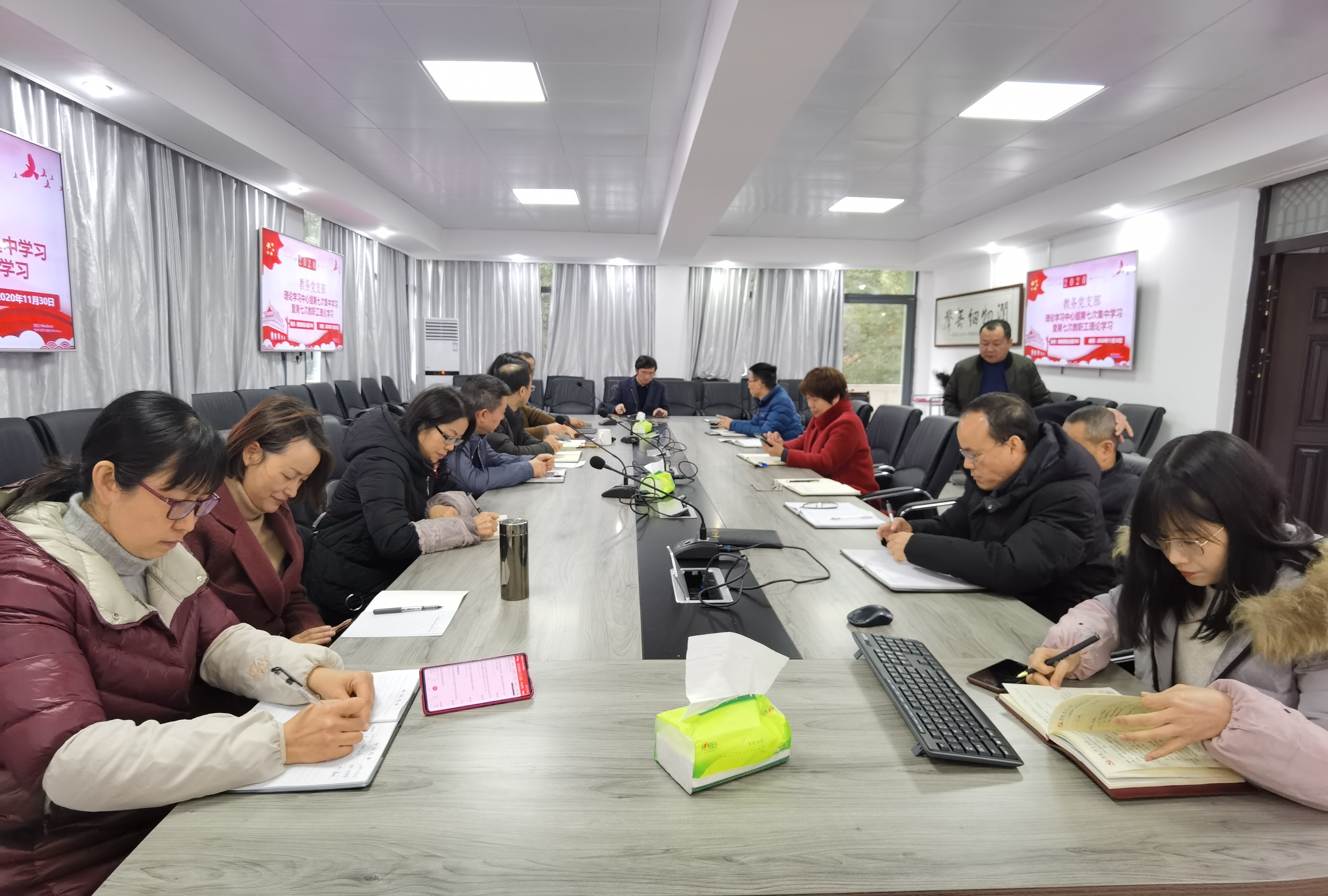 11月30日下午,教务部举行2020年理论学习中心组第七次集中学习暨第七次教职工理论学习。活动由教务党支部书记刘泽华主持,教务部全体教职工参加学习。