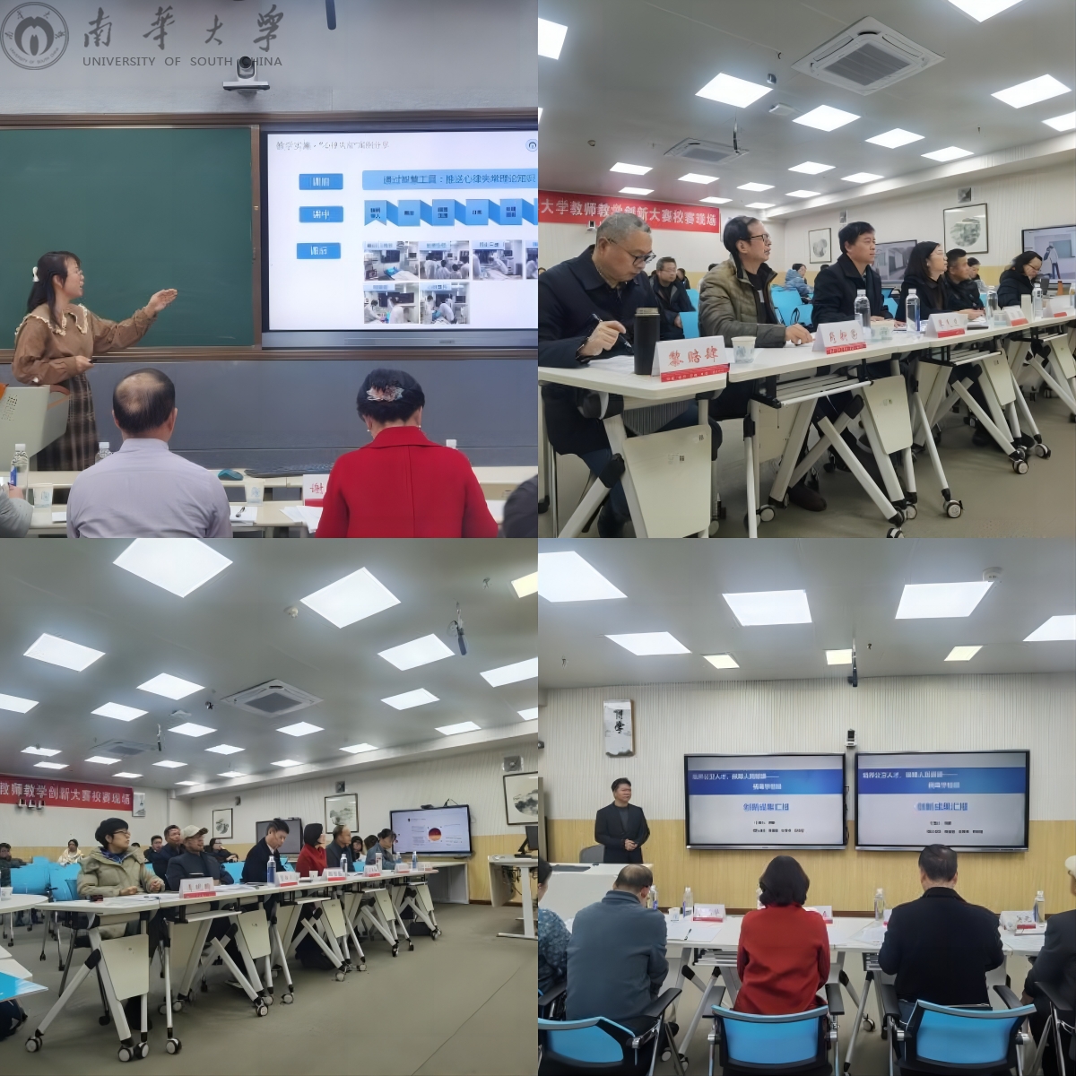 “推动教学创新、培养一流人才,1月6日,我校第四届教师教学创新大赛在红湘校区南华楼圆满落幕。大赛由教务部、船山学院负责组织承办。本次大赛特邀了中南大学、华南师范大学、湖南中医药大学、广东工业大学等校外教创赛专家和校内专家担任评委。大赛旨在激发教师的教学热情,提升教育教学质量,推动教育教学改革。
