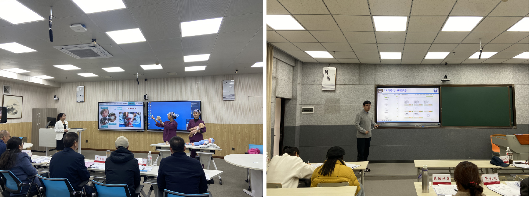 自9月份发布校预赛通知以来,得到了各学院和广大教师的积极响应和热情参与。大赛分新工科组、新医科和产教融合组、新文科和基础课程组、课程思政组4个赛组,共计60余名教师参赛,比赛总分由创新成果报告材料和教学创新汇报2个部分组成,创新成果报告占40%分值,教学创新汇报占60%分值,评分标准严格按照省赛标准,每个老师赛前精心准备,比赛过程中以生动形象的方式,深入浅出地展示了课程教学过程中的创新设计成果,赢得了评委和观摩教师的一致好评。