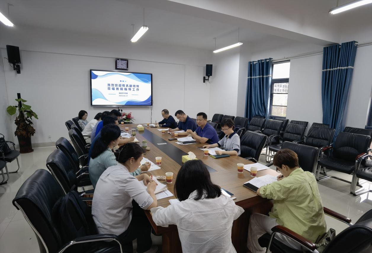 为深化教育教学改革,推动大学英语课程提质增效,3月27日下午,教务部部长彭国文带队赴语言文学学院开展专题调研,聚焦“大学英语”课程学时学分优化与教学质量提升工作。教务部领导班子成员、相关科室负责人,语言文学学院党委书记龙志坚、院领导班子及大学英语教研室教师代表共同参与研讨交流。