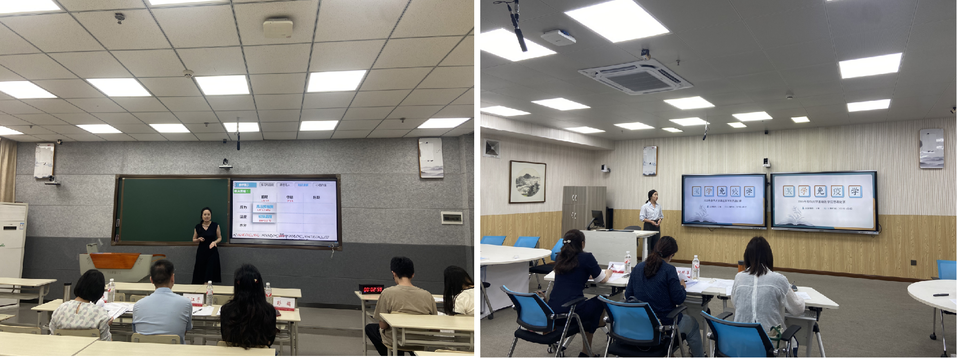 本次竞赛聚焦“课程思政”与专业教学的深度融合,全面考察教师的教学设计、课堂实施及思政元素提炼能力。参赛团队紧扣学科特色,深挖课程蕴含的思政育人资源,通过说课环节系统阐述教学目标、思政融入路径及创新设计思路;在课堂教学展示中,以案例导入、情境模拟、互动探究等多样化形式,将家国情怀、科学精神、文化自信等价值元素自然融入专业知识传授,实现“润物无声”的育人效果。提问环节中,评委围绕思政元素挖掘深度、教学方法创新性等核心问题与参赛教师展开深入交流,进一步启发教学优化方向。