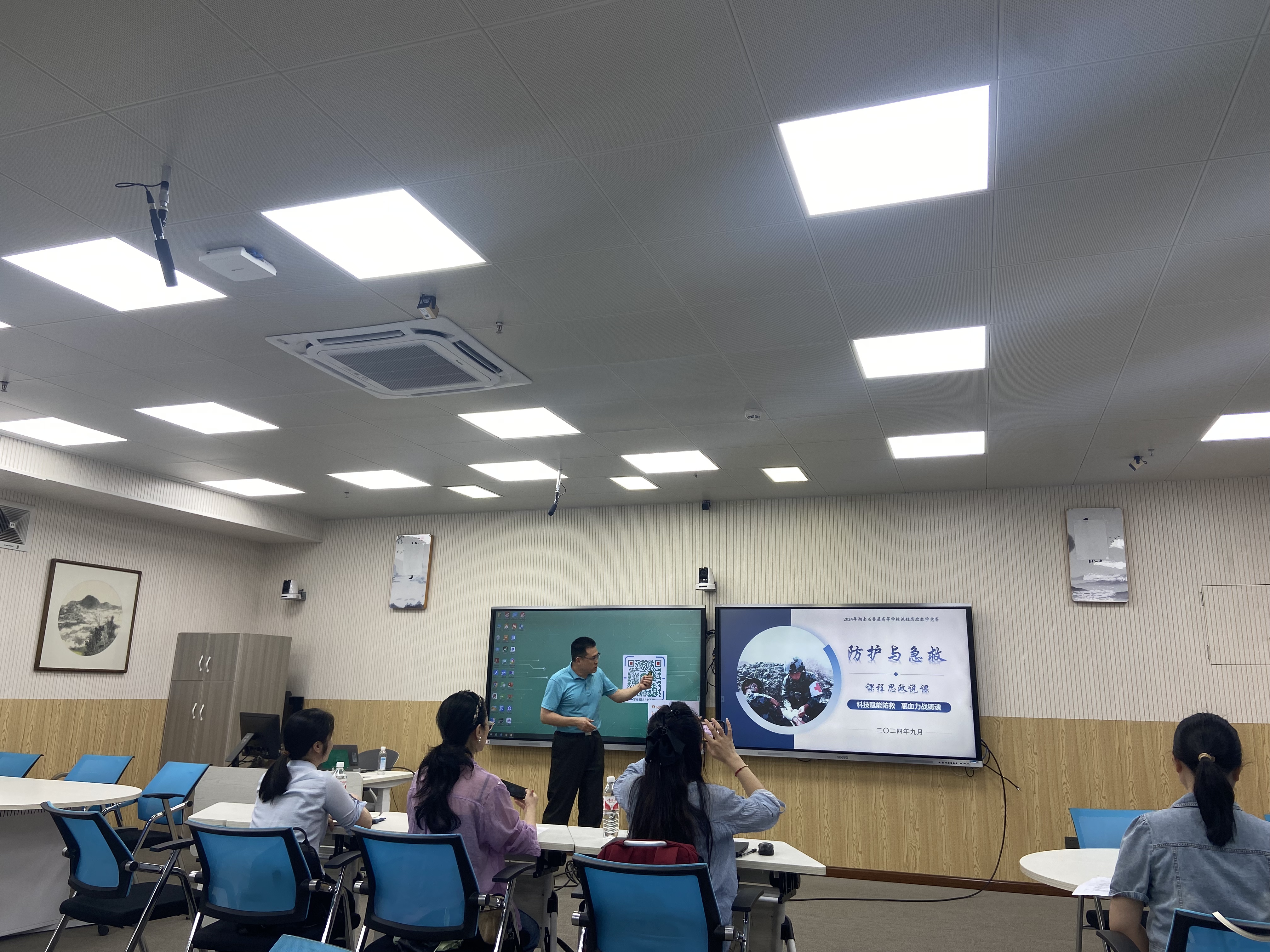 宋殿义副教授从教学比赛简介、教学比赛的准备、教学比赛的实施和教学比赛的总结四个方面展开讲座。宋教授首先简介课程思政教学竞赛的形式及材料要求,建议教师们合理规划,早做准备,找到合适的参赛队友及提前收集素材资源。宋殿义副教授结合去年省赛参赛经历,以《防护与急救》课程为例深入解析了“10分钟说课”和“课堂教学展示”两大环节的实施要领。对于课程思政元素的融入,宋教授特别强调要避免生硬灌输,应当追求“深发思政元素,润物细无声”的境界,并通过实际案例形象生动展示了如何融入思政元素,引领学生价值观,实现思政元素自然渗透。