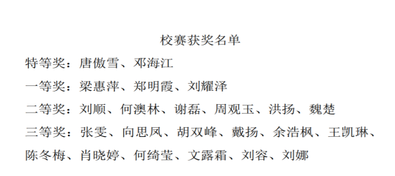 比赛中,选手们熟练运用初赛积累的经营经验和竞赛技巧,经过激烈的角逐,最后校赛共有23名选手脱颖而出,其中唐傲雪、邓海江同学荣获特等奖,梁惠萍、郑明霞、刘耀泽同学获得一等奖。这次比赛旨在满足大学生对企业经营管理的兴趣,进而参悟科学的管理规律,全面提升管理能力,同时也为湖南省以及全国大学生企业模拟经营大赛选拔后备力量,让我们在此预祝参加省赛的各位选手能再创佳绩,为校添光!