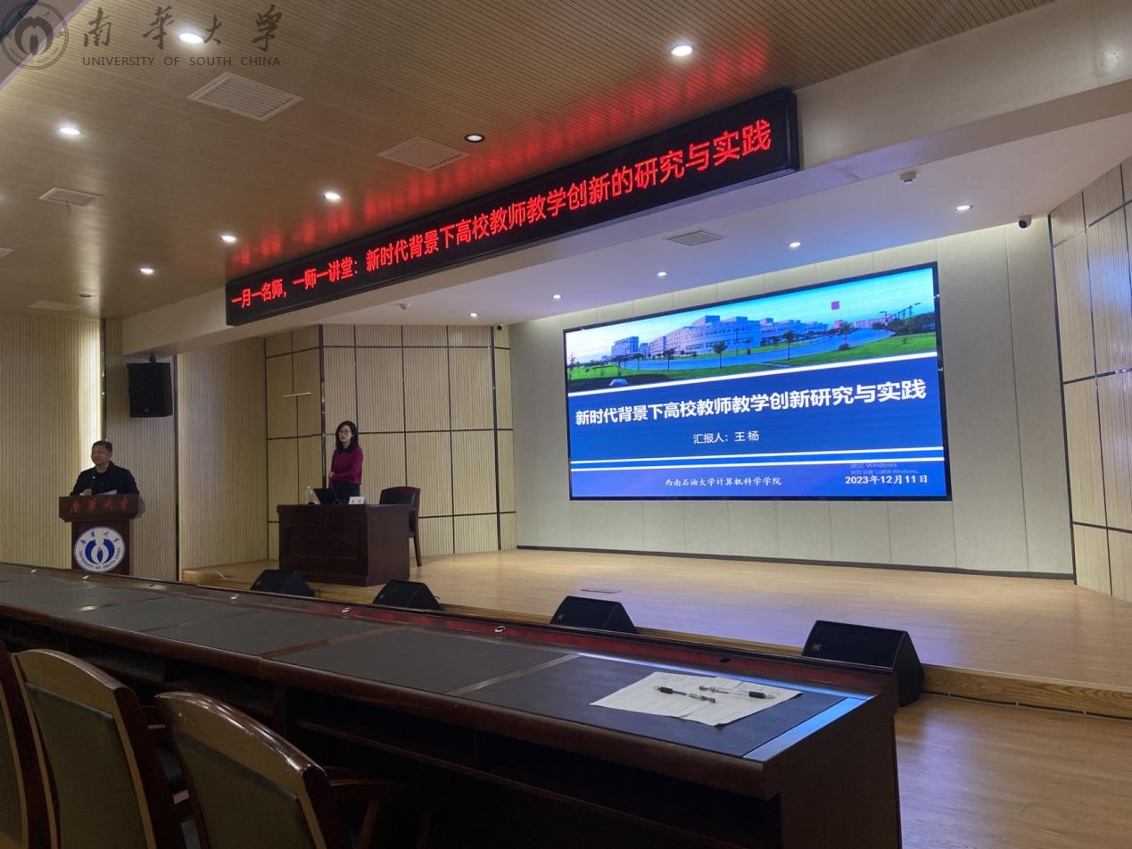 为进一步提升全体教师从事教育教学能力,拓宽全体教师开展教学创新改革思维,12月11日上午,教务部在医研楼报告厅组织本学期“一月一名师,一师一讲堂”系列讲座的第三场报告会,特邀西南石油大学计算机科学院院长王杨教授开展题为“新时代背景下高校教师教学创新的研究与实践”专题报告。报告会由教务部部长彭国文主持。