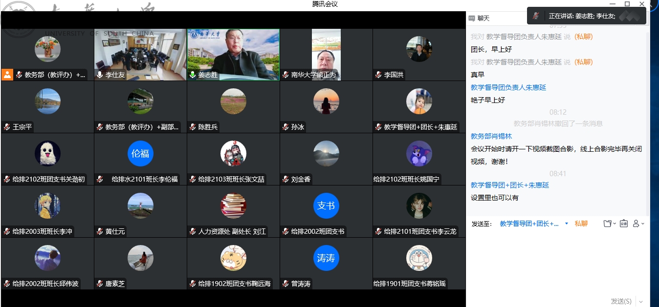 专家组就专业认证中期督察的相关工作要求进行了详细阐述。我校土木工程学院副院长曾涛涛从2019年专业评估认证意见、持续改进情况、专业代表性成绩、后续工作计划等方面汇报了给排水科学与工程专业持续改进与建设情况。专家组就专业课程体系优化、实验室条件改善、实践基地建设、青年教师工程实践能力提升等方面在线进行提问与调研,学校相关单位负责人、学生代表现场进行解答。