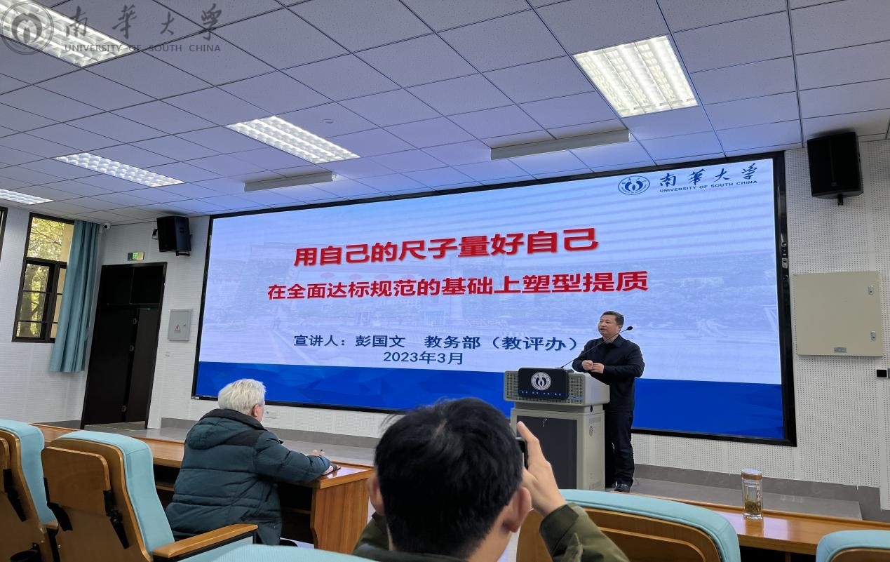 由刘泽华、彭国文、张新华、肖锡林等专家领导组成的宣讲团送教上门,走进二级学院,从认识新一轮本科教育教学审核评估、学校对本科教育教学审核评估安排、学校对学术型人才培养的基本理解、学院层面评估工作四类任务要求等方面,对如何科学全面把握新一轮审核评估要求,扎实有效开展学院自评自建工作进行了深入浅出的宣讲。