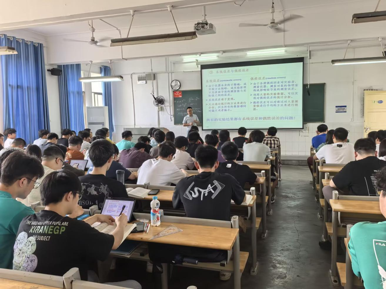 课堂上,王晓冬围绕“核衰变和放射性计数的统计分布及统计误差”这一核心知识点,通过融合板书和多媒体等多种教学手段,将概率与统计学、核辐射探测、探测器应用等多个知识诠释的非常透彻。他深入浅出的讲解方式,不仅让学生们对核辐射探测有了更加直观的认识,更激发了他们探索未知、追求真理的热情。