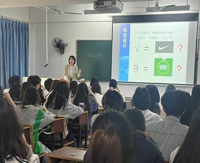 课堂上,邓老师以生动且富有深度的方式,阐释了标志设计的核心要素——简洁性、象征性与文化性,并引导学生探讨如何在设计中融入本土文化基因与社会责任。通过丰富的案例解析和互动讨论,引导学生思考如何通过简约的图形语言传递丰富的品牌信息,极大地激发了学生的创作灵感和学习热情。值得一提的是,老师将专业知识与文化传承、社会责任相结合,鼓励学生立足本土文化,在设计创作中融入中国传统美学元素和当代社会价值观,使标志设计既具有民族特色又能体现时代精神。
