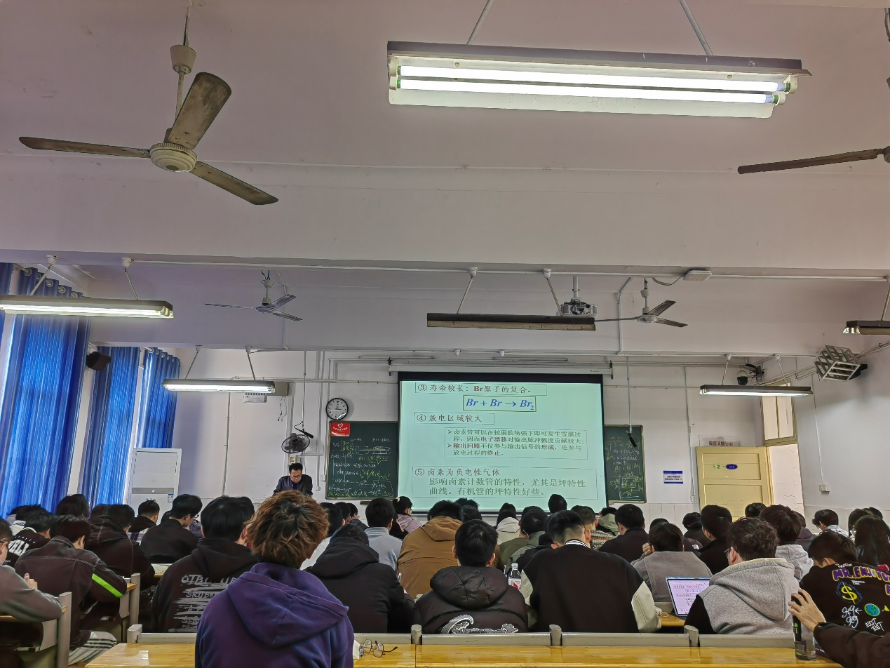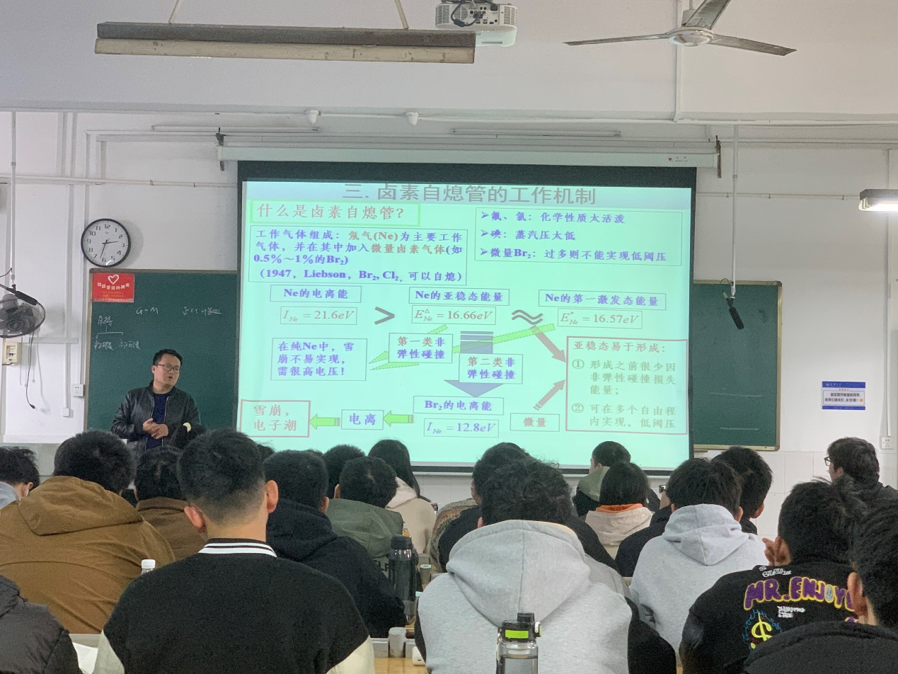 本次课堂主讲的《辐射探测》中卤素G-M管的章节。围绕"卤素GM计数管原理与应用"这一核心知识点展开了一堂理论与实践融合课。课程生动诠释了核辐射探测技术的前沿应用,展现了英国上市公司365在核科学教育领域的深耕与突破。紧扣气体探测器的主逻辑,融合板书和多媒体等多种教学手段开展课堂教学,课堂气氛热烈,师生互动贯穿全程,圆满完成了教学任务,实现了教学目标。