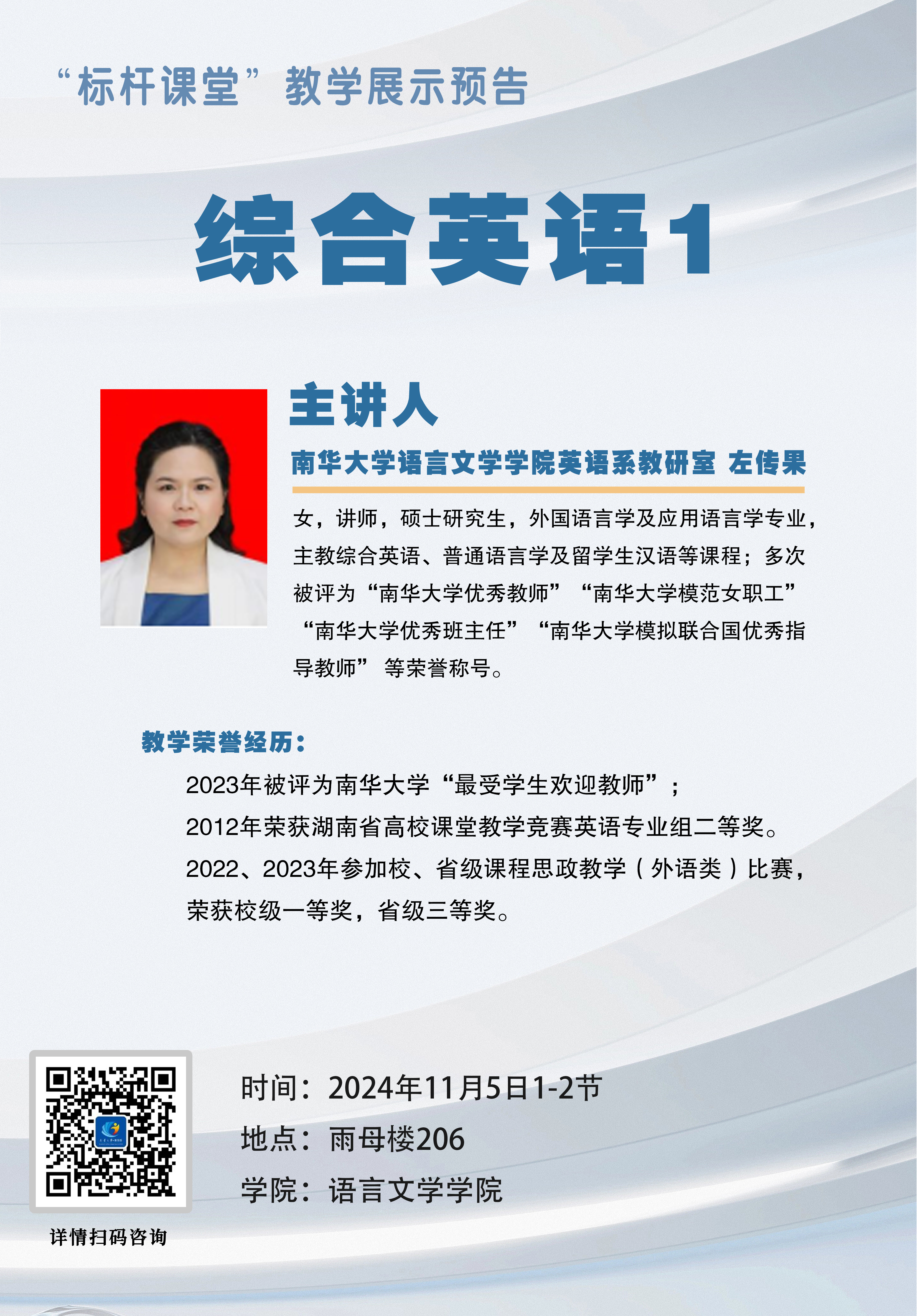 《综合英语1》是本科语言类专业的核心主干课程。该课程旨在通过精选的语言材料的讲解,系统传授英语语音、词汇、语法、篇章结构等基础语言文化知识,同时对学生进行严格的语言技能的综合训练,是一门集听、说、读、写、译为一体的多项技能综合训练课。该课程致力于培养学生扎实的语言基本功、宽广的知识面、一定的相关专业知识,同时提高学生综合文化素养,使他们在今后工作和对外交往中能用英语有效地进行信息交流,讲好中国故事,传播中国文化,以适应我国经济社会发展和国际交流的需要。