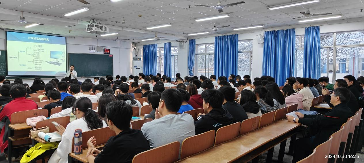 为提升学院教育教学水平,提升人才培养质量,计算机学院以展示标杆、学习标杆为指导思想,组织学院老师参与教学展示活动。在校教务部的大力支持下,2024年10月30日下午,计算机学院标杆课堂展示活动在南华楼216举行,出席本次活动的有学院领导、学院督导组部分成员以及学院观摩教师代表。