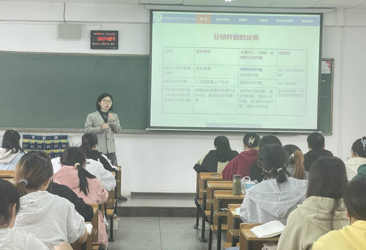 《医学微生物学》是临床医学、药学、护理学等医学专业的一门联系基础与临床的桥梁课程。本次教学内容为结核分枝杆菌的致病性及其检查方法。文雅婷老师立足新课标,从课程目标、教学重难点、学情出发,以“最美防痨人”马玙教授采访视频为切入点,结合详实的流行病学数据,基于5E教学法引导学生探究结核病流行原因,依托雨课堂等教学平台设立教学情境,融合多学科知识分析结核菌素试验结果的判读,并介绍了我国结核病防治事业的卓越成就和疫苗研发的领先地位,课堂讲授富有感染力,课堂气氛活跃,学生参与度高。她鼓励学生们积极思考、勇于提问,充分发挥学生的主动性,培养学生核心素养。