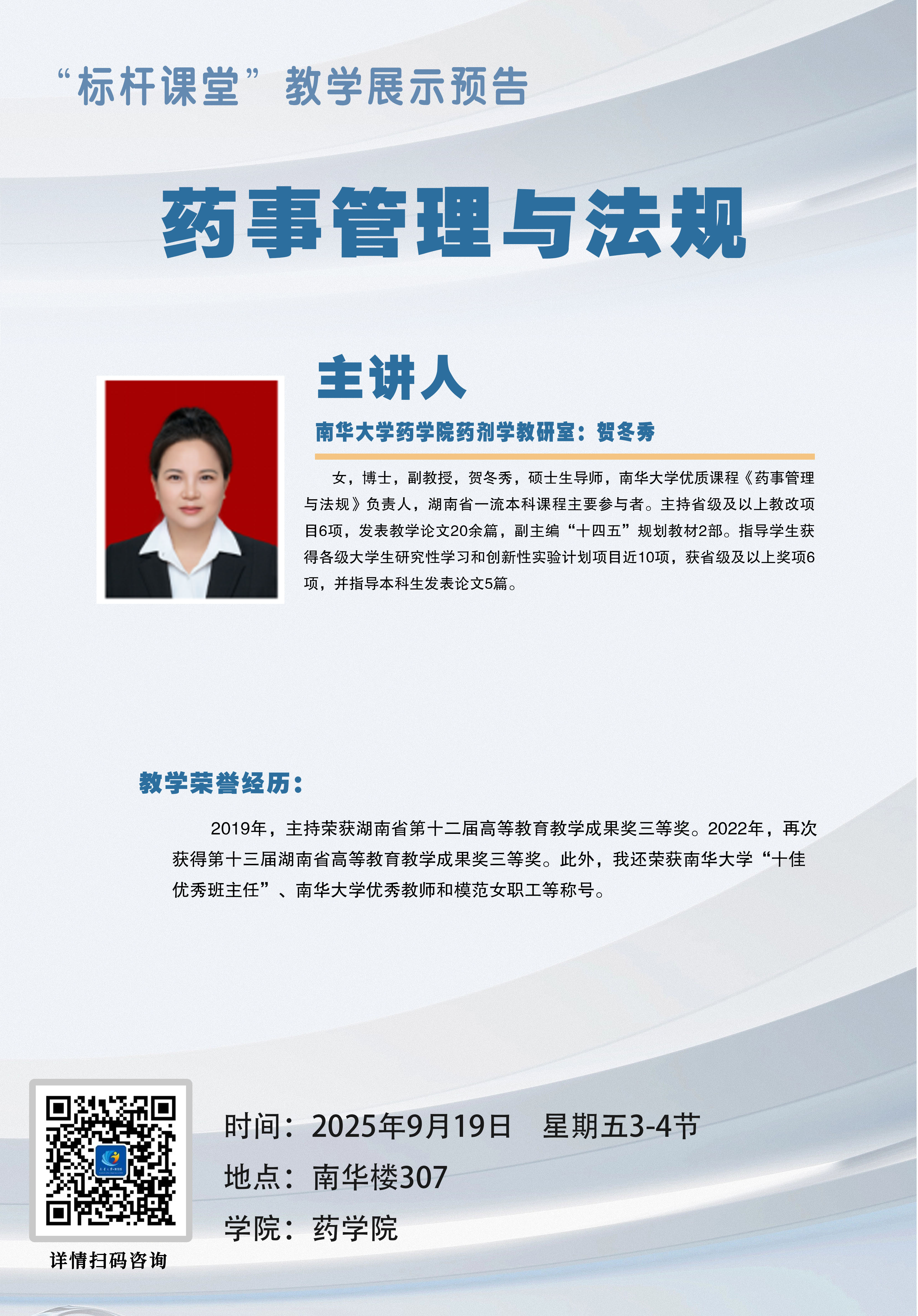 《药事管理与法规》是药学类专业的核心课程,旨在引领专业方向、规范专业行为,并促进从业人员健康成长。该课程是国家执业药师和职称药师考试的必考科目,通常在第5学期开设,共48个理论学时。课程以《药品管理法》和《中医药法》为基础,围绕药品的研制、生产、经营、使用和上市后研究的全生命周期管理展开,带领学生走进药事管理的法治和科学监管世界。