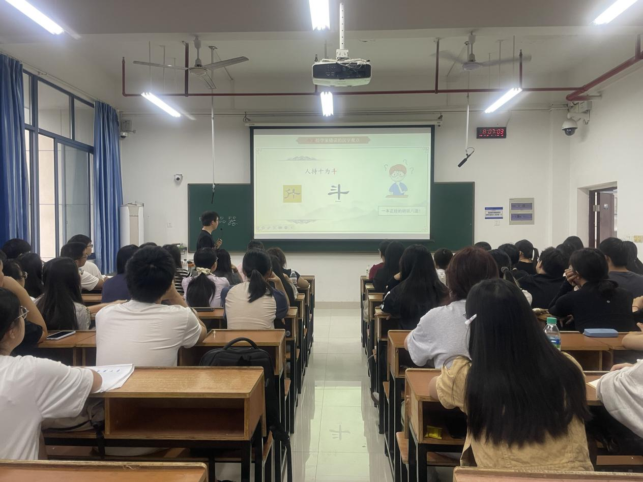 9月19日,语言文学学院“标杆课堂”系列的《古代汉语》“汉字构造”专题展示,由汉语系彭老师以“信息化赋能象形教学,三维度解码汉字基因”为核心特色,通过“趣味导入—许慎溯源—说文解字—文化延伸”四环节,结合丰富的信息化资源,让象形汉字的构造智慧直观可感。主讲老师为中文系彭老师,中文系部分老师参与了观摩学习。